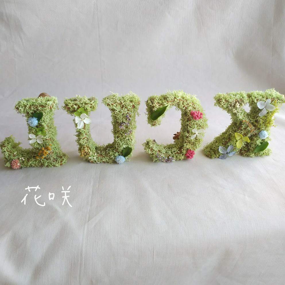 プリザーブド加工されたモスと小花を装飾します。