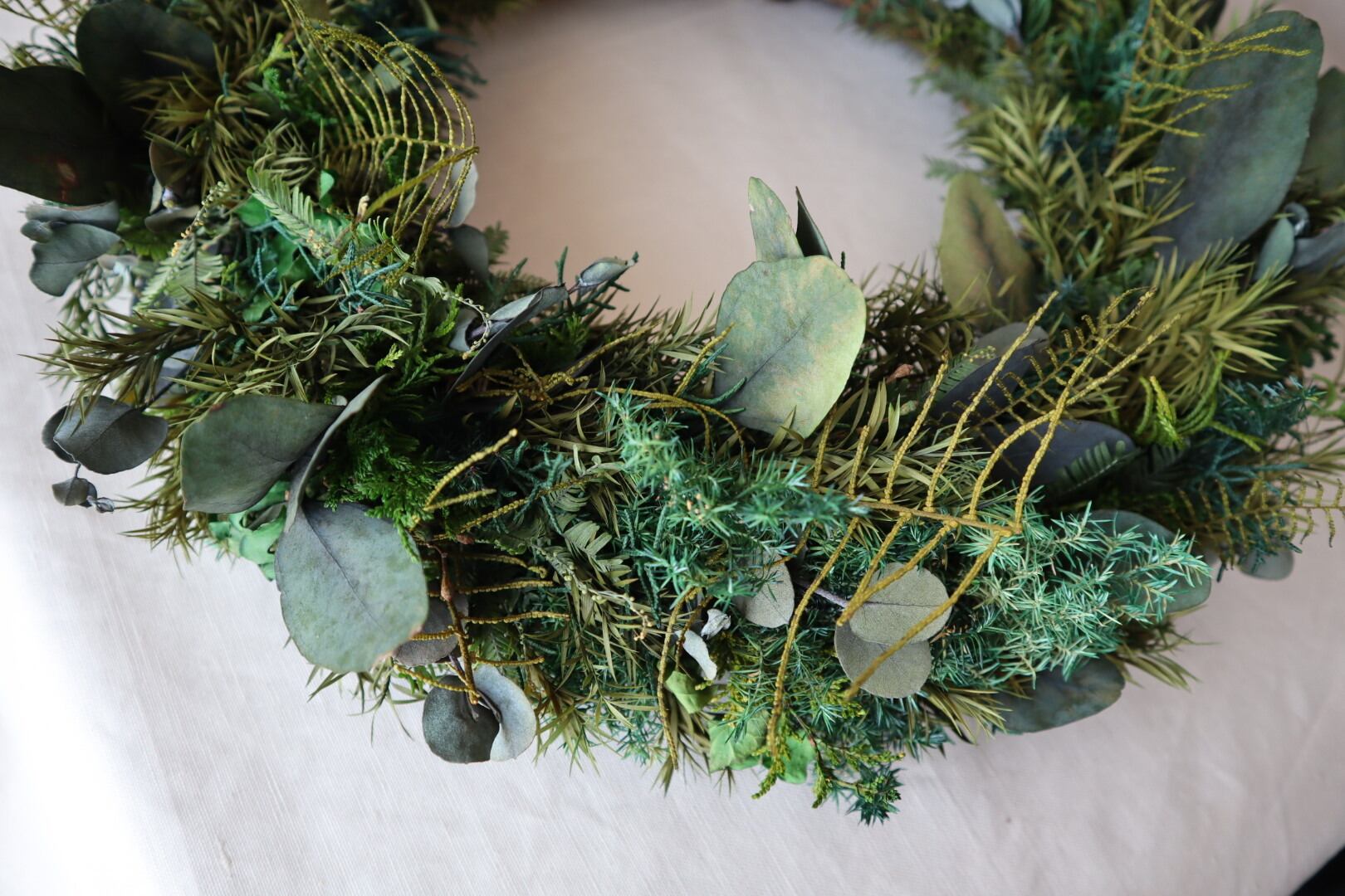 数種類のグリーンだけを使用したリースです。