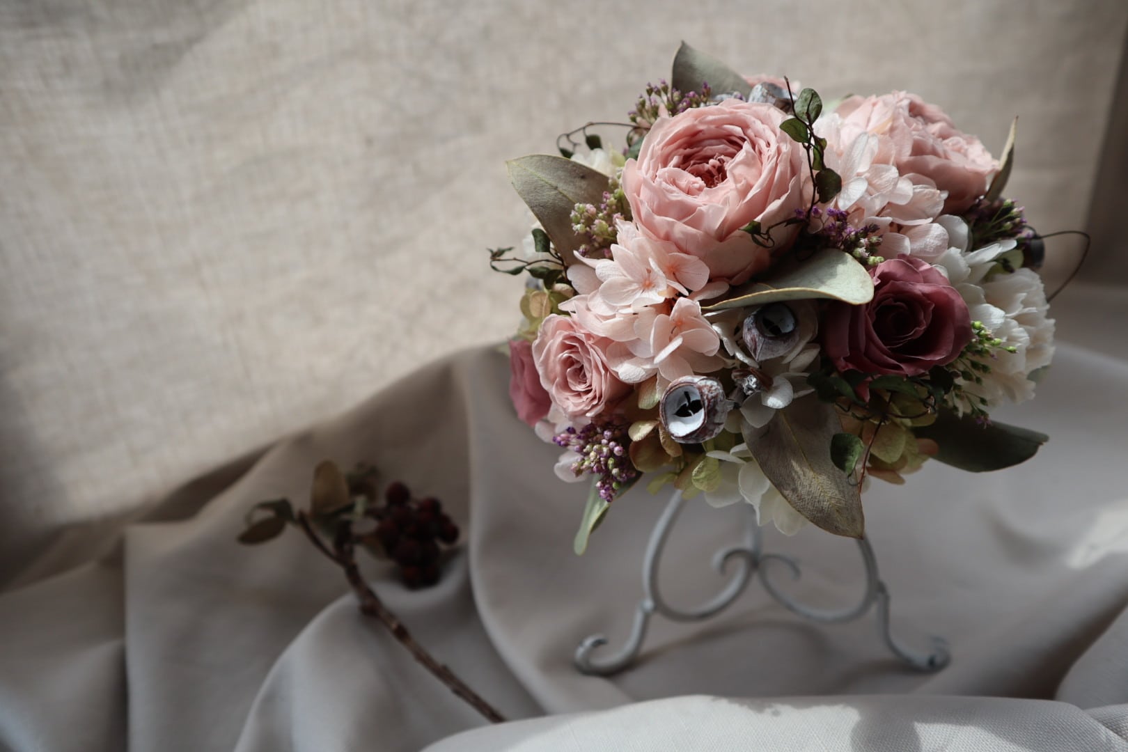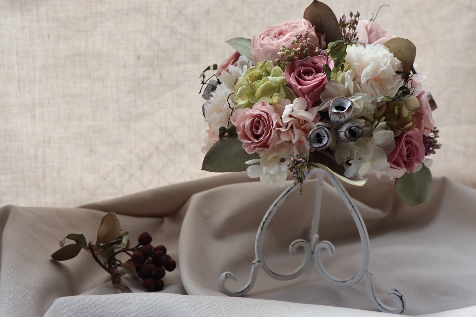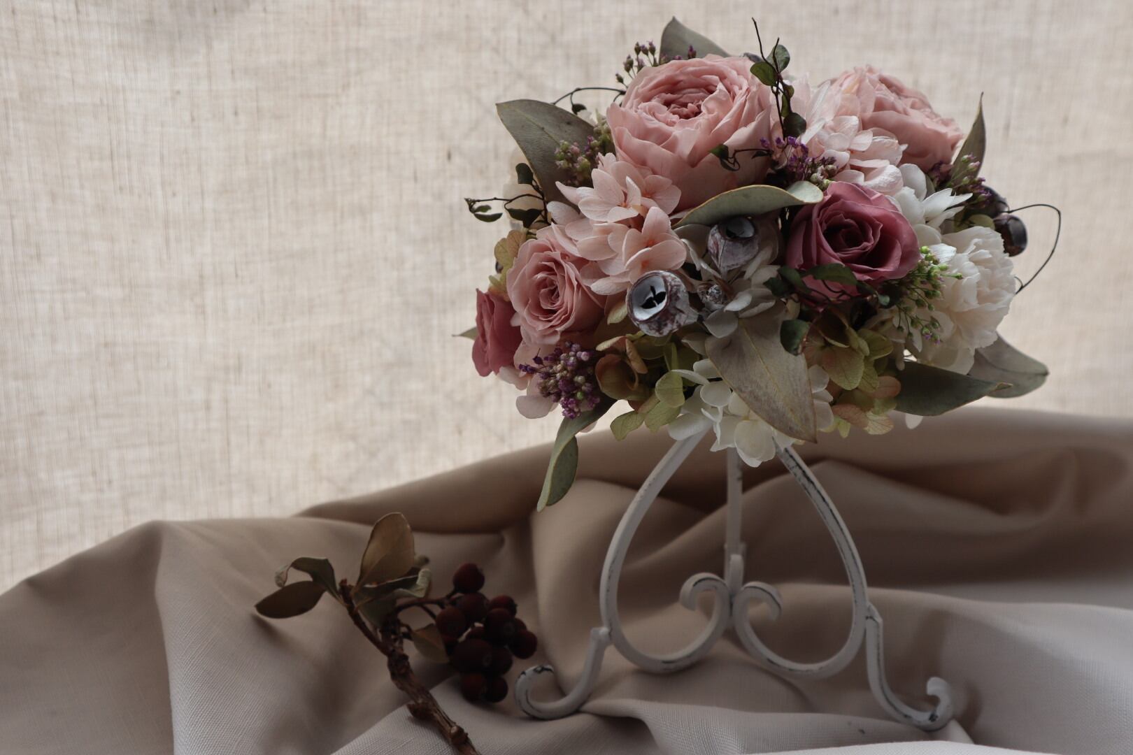 白のアイアンスタンドにまるでブーケかのように