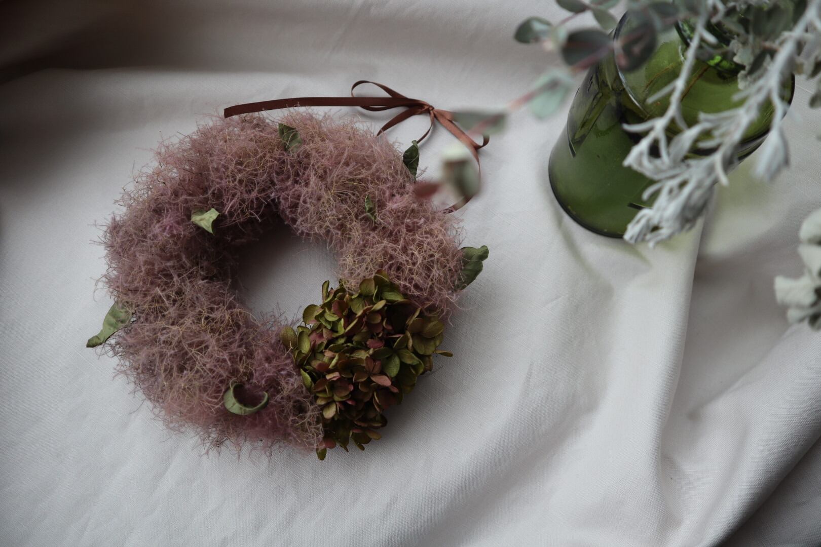 紫陽花とスモークツリーのリース