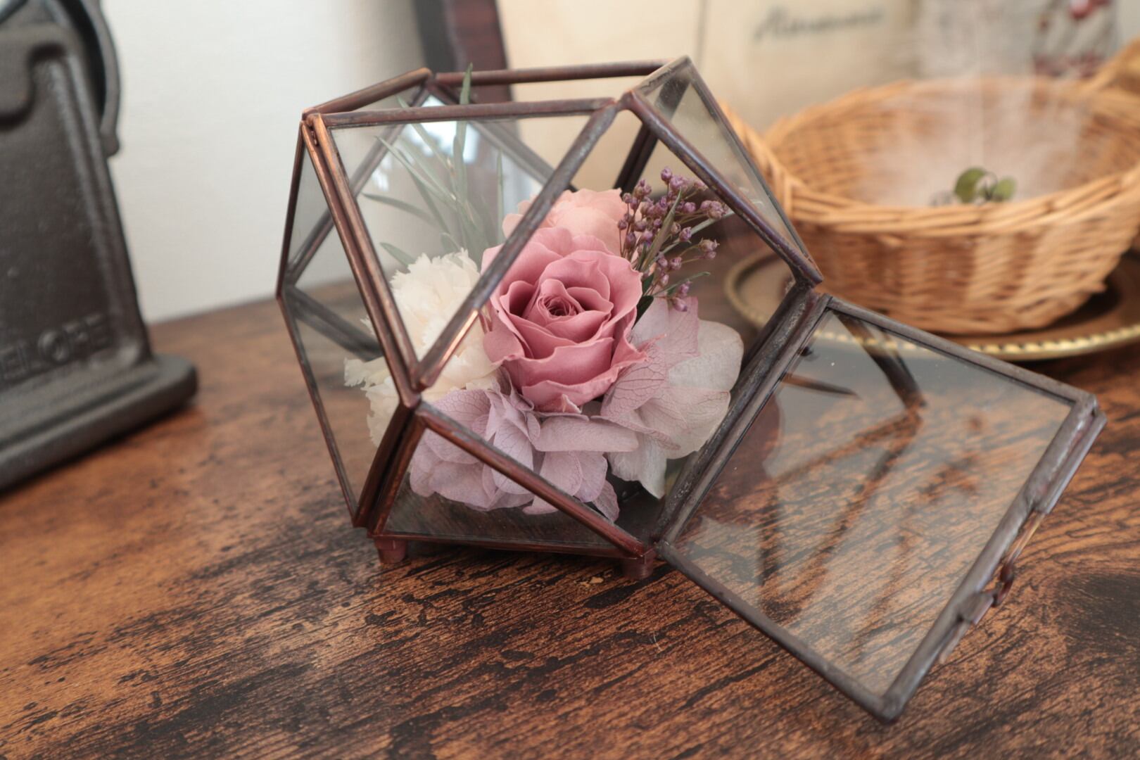 ガラスの反射がきれいな多面体のキャンドルホルダーに