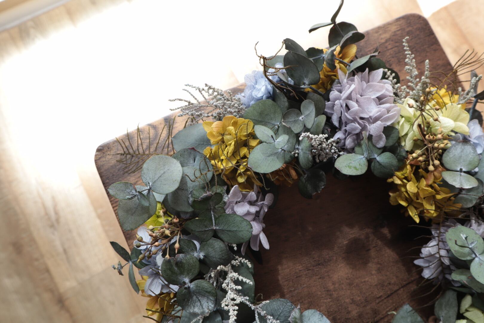 ユーカリと紫陽花のリース