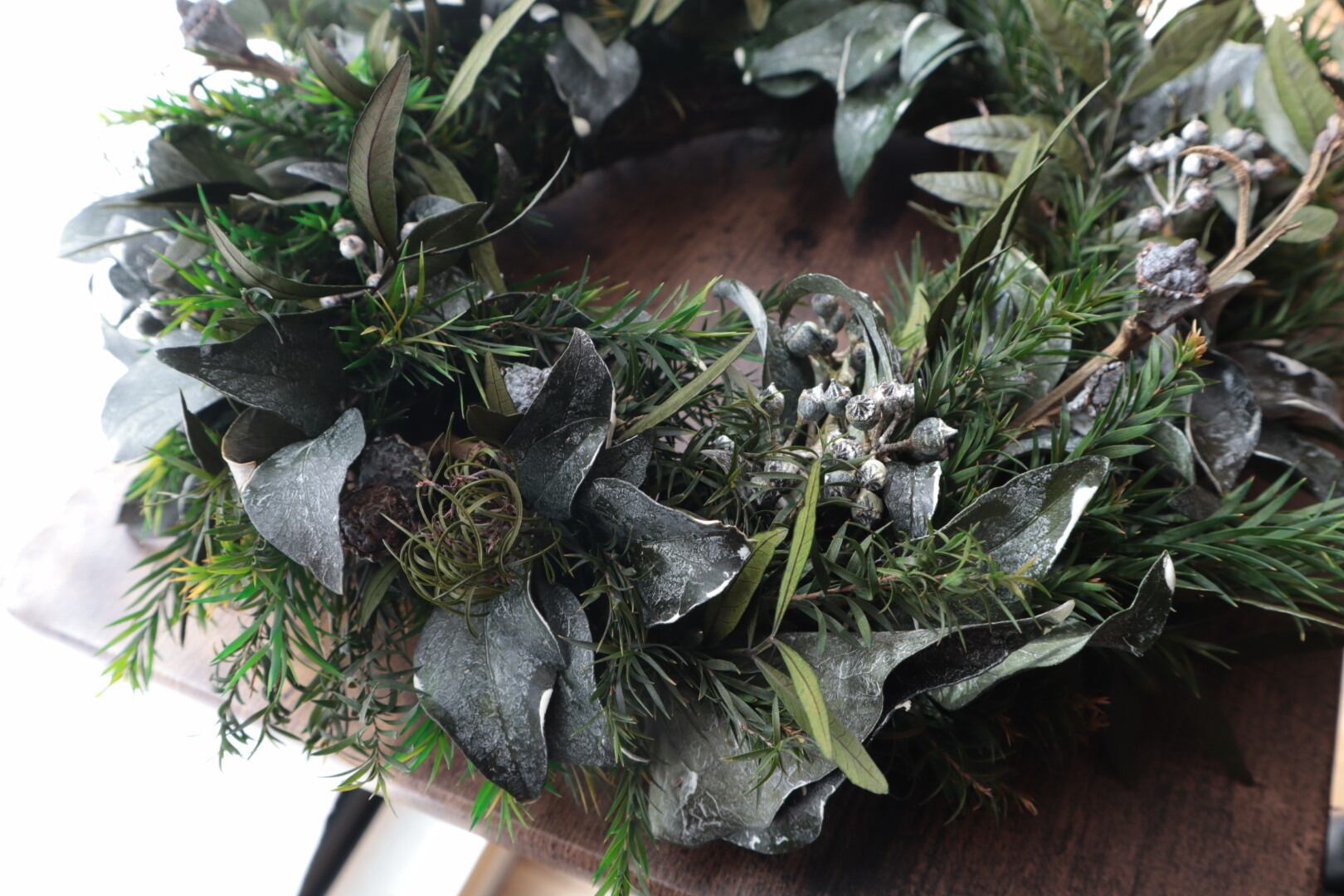 新緑もいいですが、深緑のリースを。
