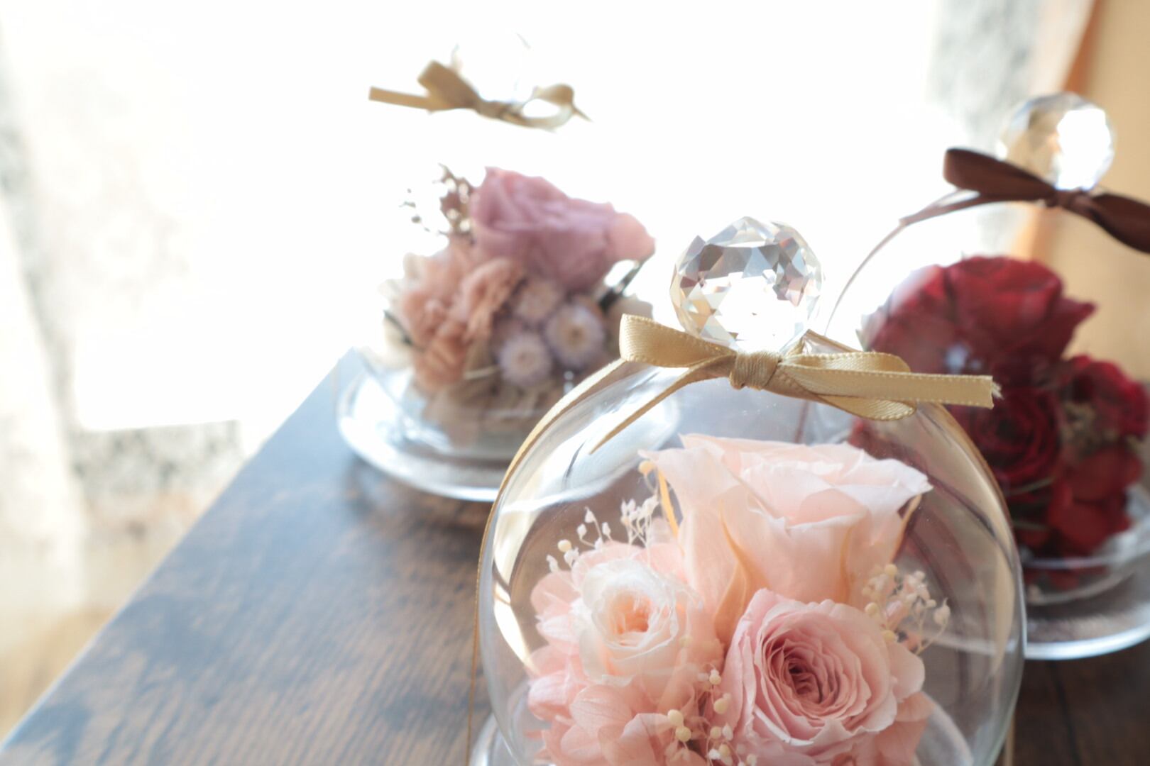 デザインカットされたガラスドームの中に