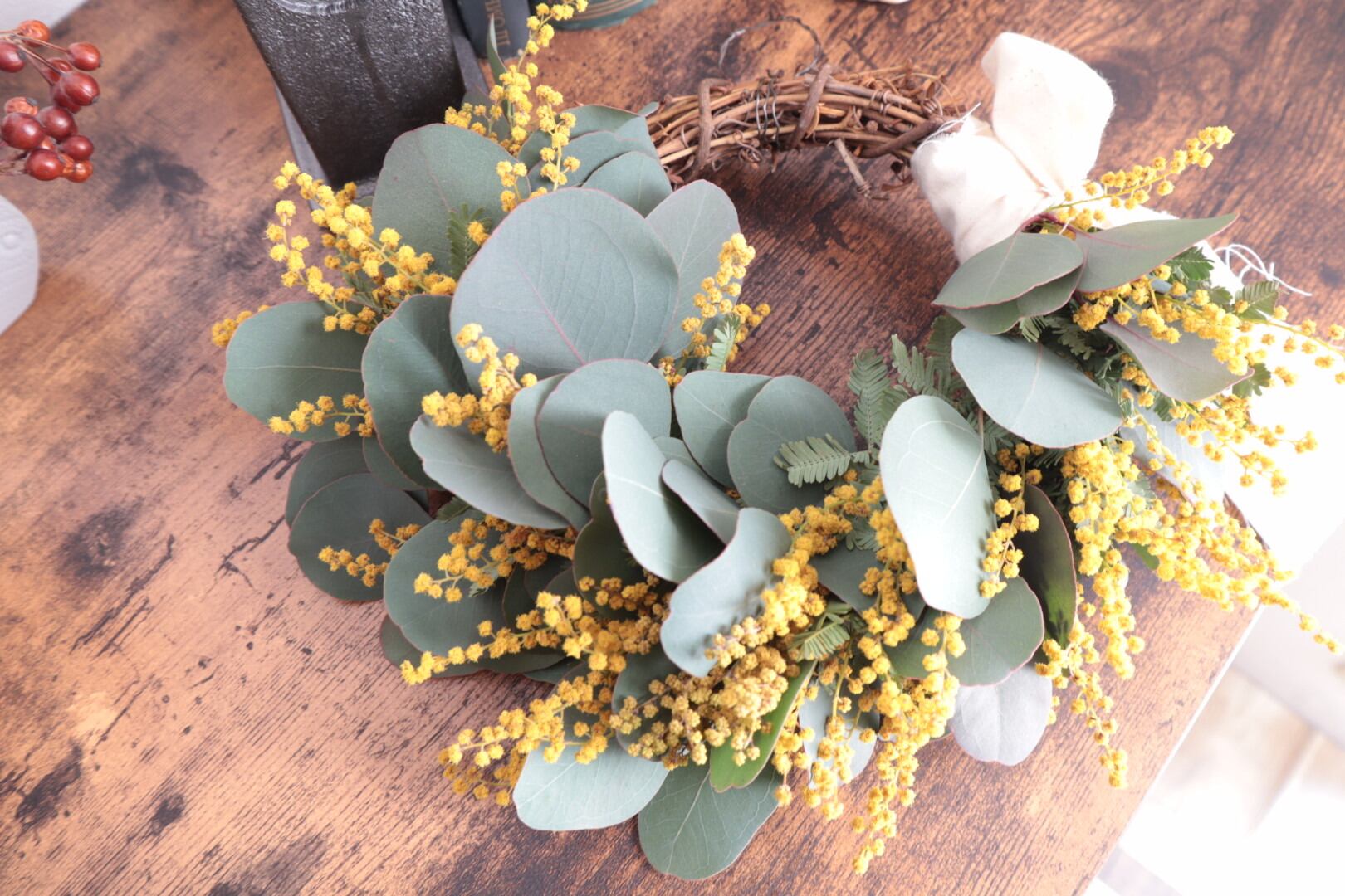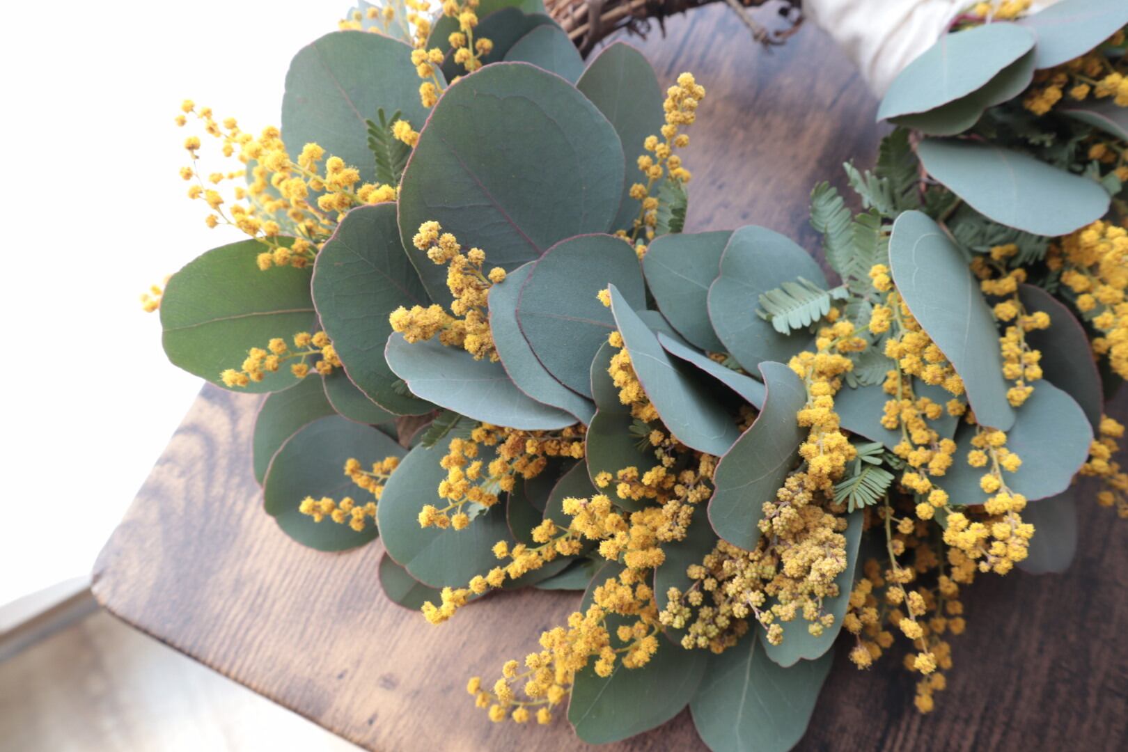 フレッシュ(生花)ミモザのリース。