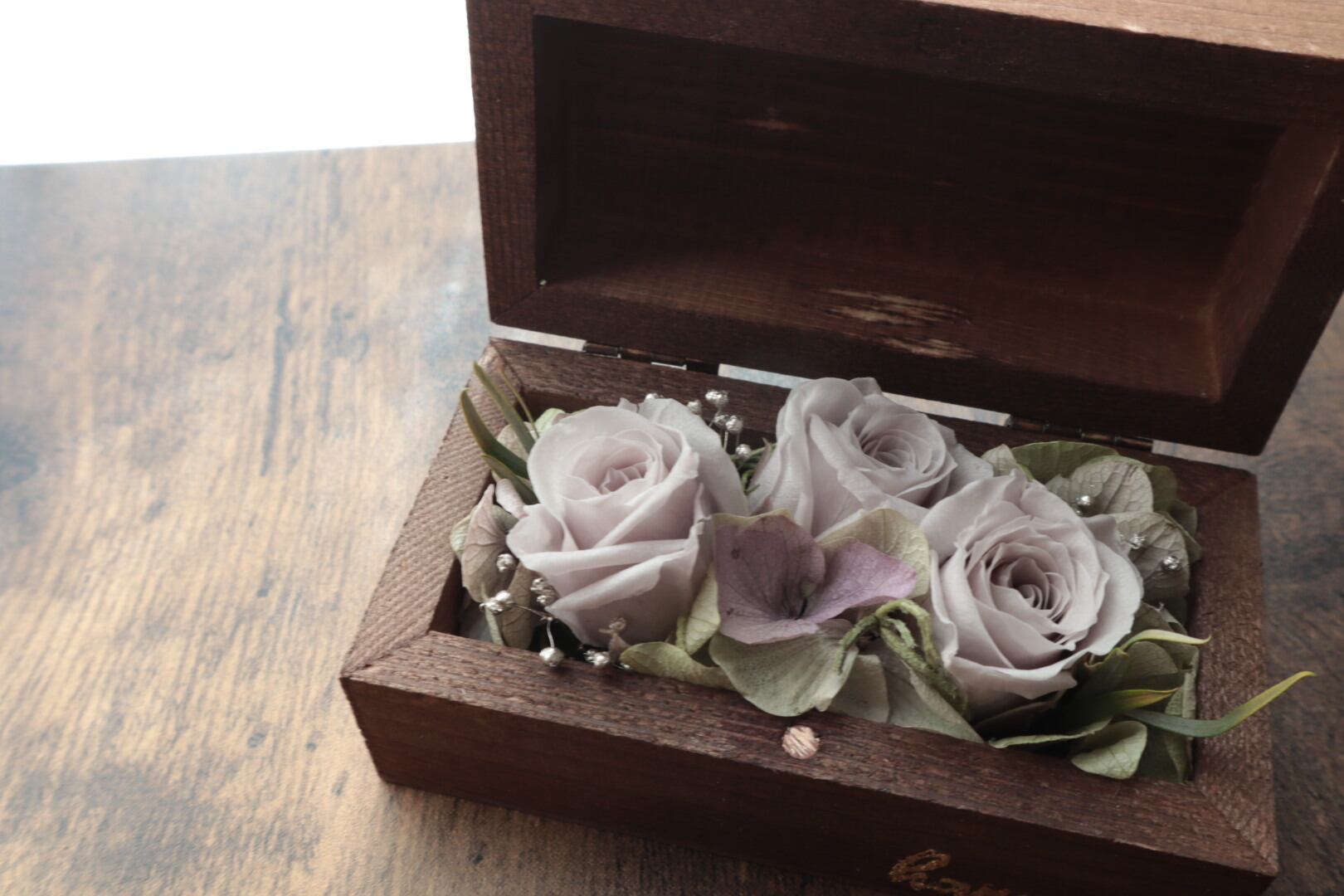 生花を一度脱色し、保存成分の入った着色料で染め直し長期保存できるよう加工されたお花です。